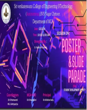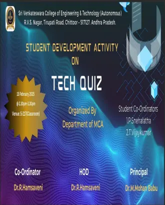 Master of Computer Applications Department (MCA) was established in the year 2004-05 with an intake of 120 students, with the approval of AICTE and affiliated to the JNTU, Ananthapuramu. Within a short span time the department has grown to a commendable level in terms of infrastructural and academic standards on par with other premier institutions in the country. The department has been acquiring latest hardware and software.